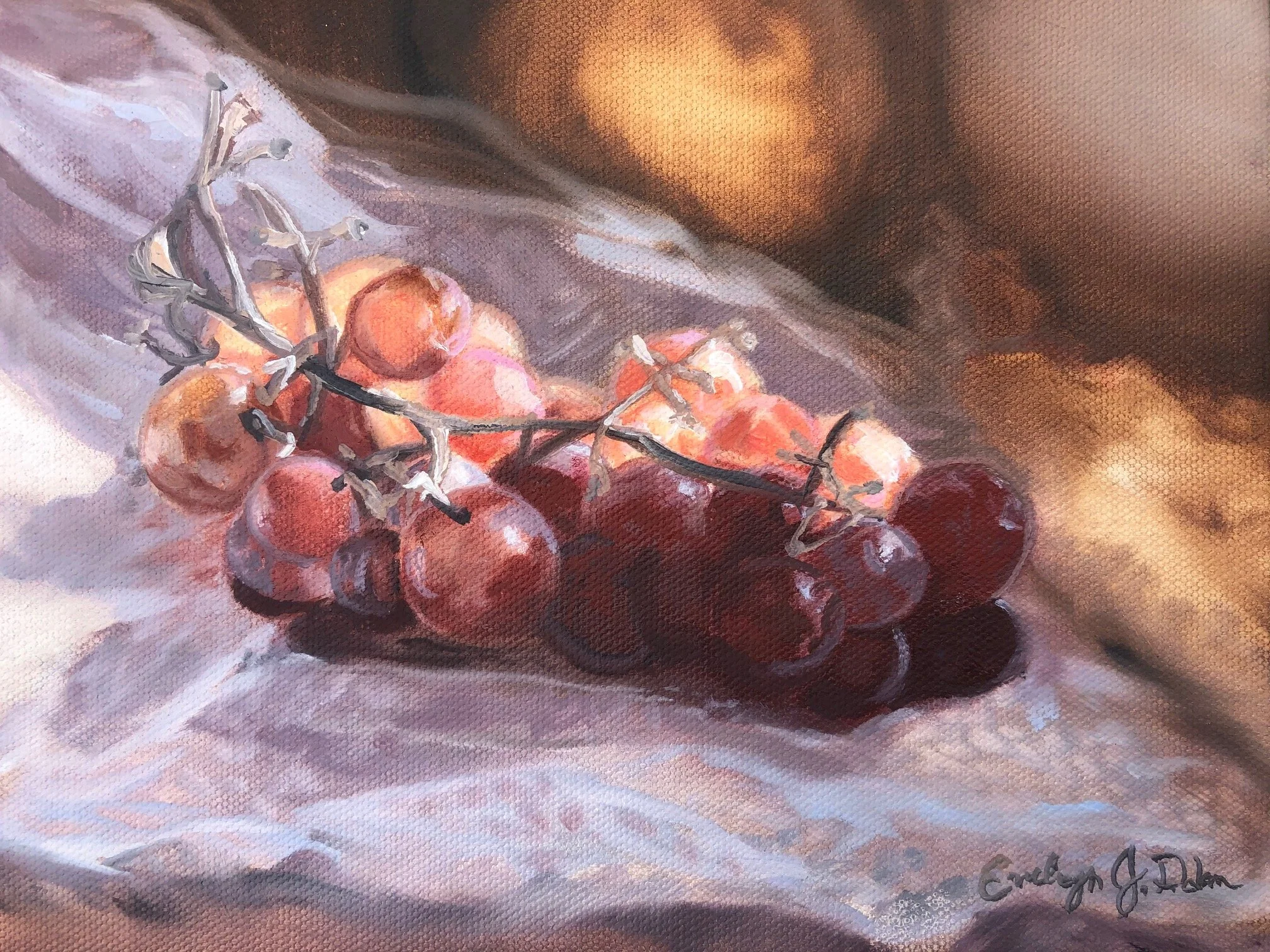 Grapes waiting for the picnic basket. Sunlight makes them a stained glass window.