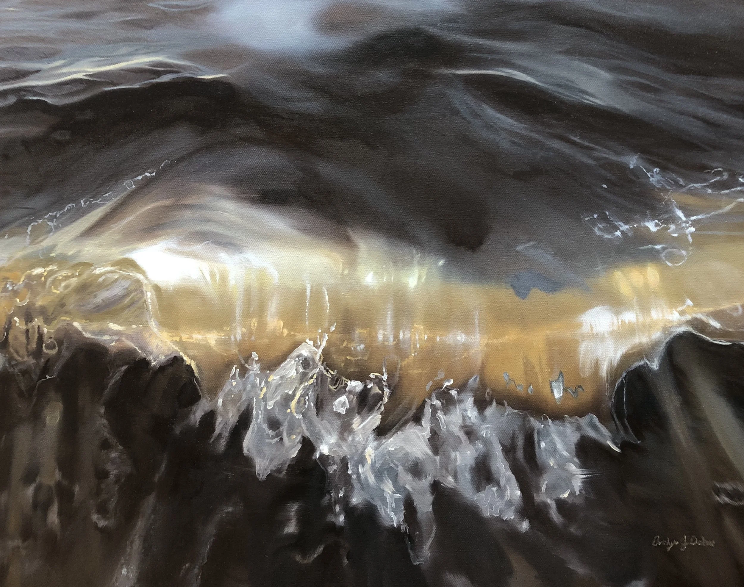 Summer Heartbeat depicts a wave crashing on the Delaware Bay. I chose this name because the pattern of light on the front of the wave reminded me of a heart’s rhythm as seen on an ECG.
